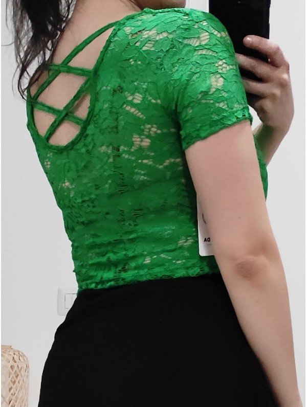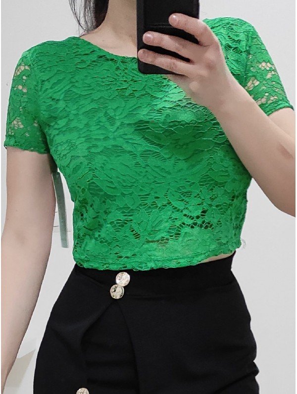 Maglia crop pizzo verde