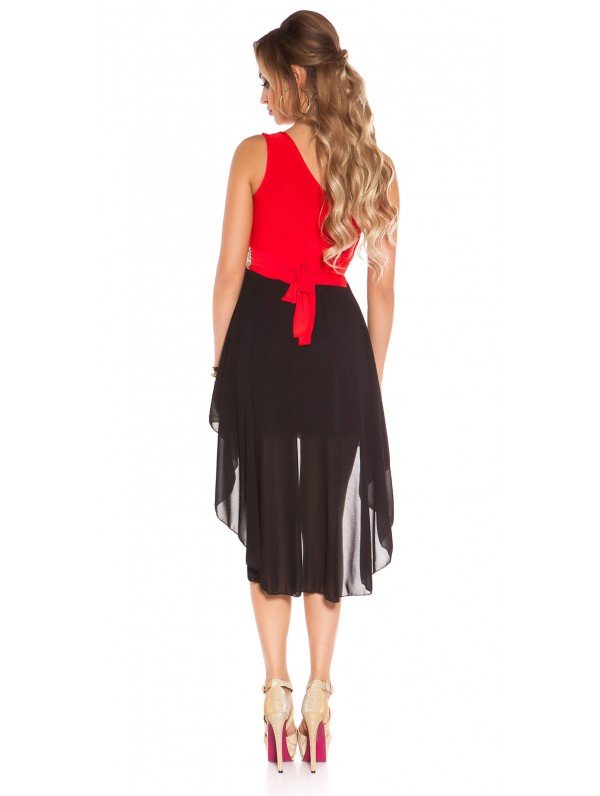 -Tessuto liscio ed elasticizzato, coda chiffon