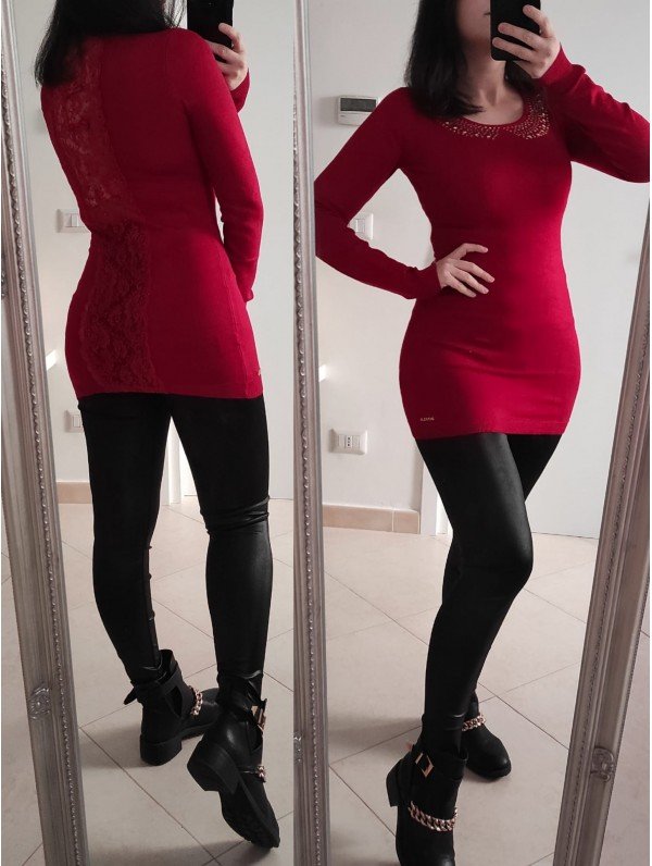 abito maglia lunga con pizzo
